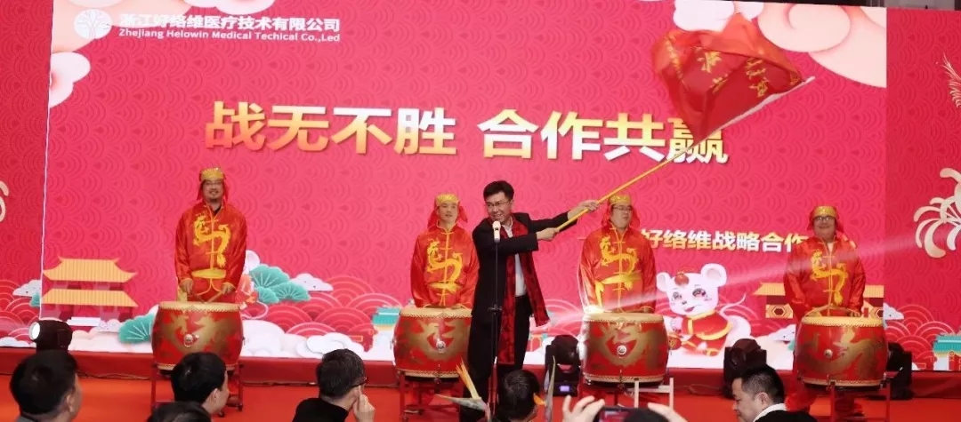 2020年1月13日18:18分,由四面大鼓,八桿大旗組成的高管陣營(yíng)拉開(kāi)了好絡(luò)維2020年新春團(tuán)拜晚會(huì)帷幕,讓人熱血沸騰。激昂的鼓點(diǎn),奮力揮旗的矯健身姿、好絡(luò)維高管團(tuán)隊(duì)高昂的斗志和凝聚力點(diǎn)燃了整場(chǎng)年會(huì)喜慶的氣氛。